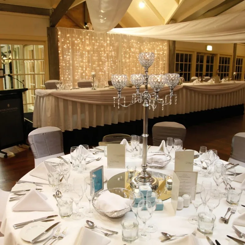Enhance your event styling with our elegant Candleabra Silver 5arm, designed to add height, elegance, and a beautiful candlelit ambiance to your table décor. Its classic silver finish makes it a striking centrepiece for weddings, engagement parties, bridal showers, and formal dinner events.