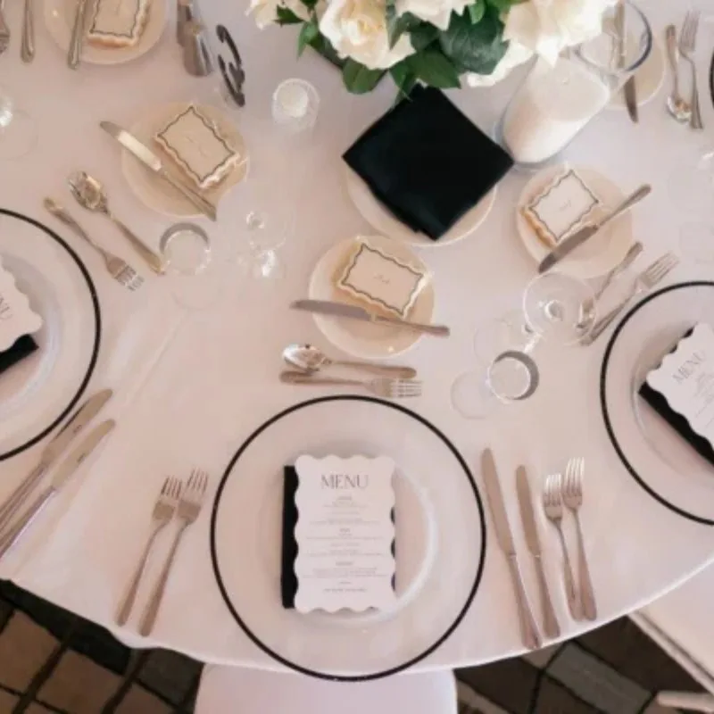 The gold rim offers a warm, luxurious look perfect for classic and romantic styling, while the black rim provides a bold and contemporary finish for modern or monochrome table designs.