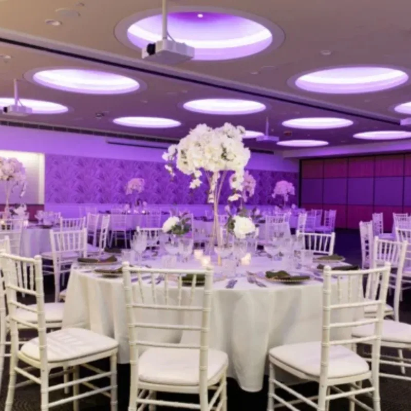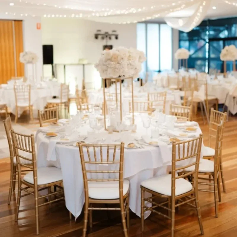 Create a beautifully styled space for your guests with our timeless Tiffany chair hire — the perfect finishing touch for your special occasion.